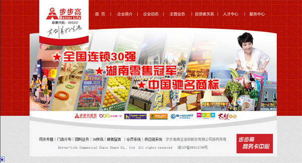 步步高(002251)商業(yè)連鎖股份有限公司始創(chuàng)于1995年,致力于成長為中國領(lǐng)先的商業(yè)及服務(wù)業(yè)運營商,公司于2008年6月19日在深圳證券交易所上市,股票代碼為002251。目前擁有步步高超市,步步高百貨(廣場),步步高云猴網(wǎng),步步高置業(yè)(步步高·新天地),步步高電器城,太楚餐飲,匯米巴便利店等業(yè)態(tài)。截至2014年底,多業(yè)態(tài)門店已遍布湘、贛、川、渝、桂、滇等省市。步步高(002251)多業(yè)態(tài)、線上線下齊頭并進(jìn)。由國際著名鋼琴家、聯(lián)合國和平使者郎朗代言的商業(yè)地產(chǎn)“步步高·新天地”品牌目前已經(jīng)有十多個大型綜合體在動工,其中70萬方純商業(yè),擁有太空飛行館、真冰滑冰場、酷車樂園、云頂星河樂園等體驗性極強(qiáng)的項目的長沙梅溪湖新天地是集團(tuán)旗下最大的綜合體。2013年12月26日成立的云猴網(wǎng)(步步高商城),致力于打造中國第一的O2O生活平臺.