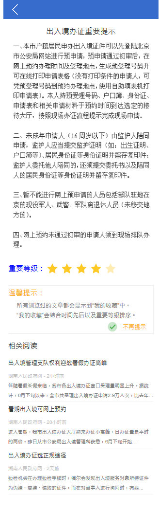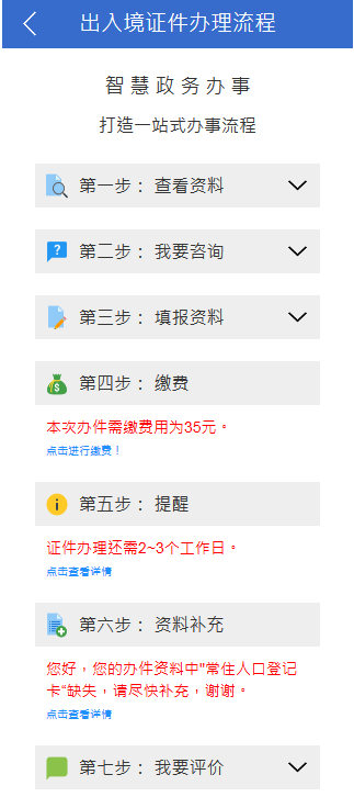 出入境證件辦理流程頁面效果圖