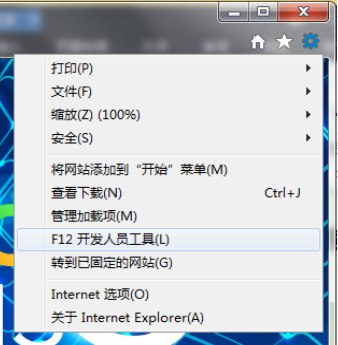 1. 打開(kāi)IE瀏覽器,點(diǎn)擊右上角的“”,選擇“F12開(kāi)發(fā)人員工具”,或者打開(kāi)IE后直接點(diǎn)擊鍵盤(pán)的“F12”。