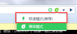 4. 若是360瀏覽器或QQ瀏覽器類(lèi)似這種帶有IE內(nèi)核和谷歌內(nèi)核的,請(qǐng)按照下圖操作切換到極速模式;因?yàn)榧嫒菽J绞褂玫氖荌E7文檔標(biāo)準(zhǔn),很多網(wǎng)站會(huì)不支持。