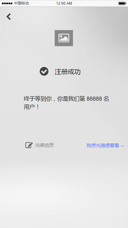 在做App注冊的時候也可以這樣,當用戶注冊成功之后,可以先不著急跳轉(zhuǎn)到個人中心,而是給用戶呈現(xiàn)一個激勵信息,比如“終于等到你!你是我們第 888 名用戶”這樣的反饋信息,還可以加上簡單的引導按鈕,讓用戶去完善信息,但一定不要給用戶施加壓力,要讓用戶有自由選擇的機會。如下圖: