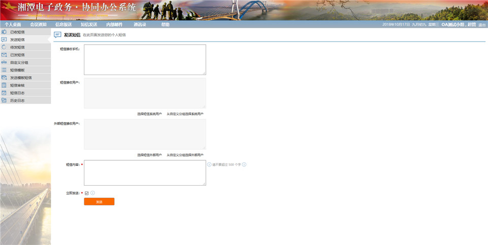 每個(gè)人都可以使用的系統(tǒng),底層是以老OA的短信收發(fā)模塊來(lái)實(shí)現(xiàn)真正的發(fā)送。