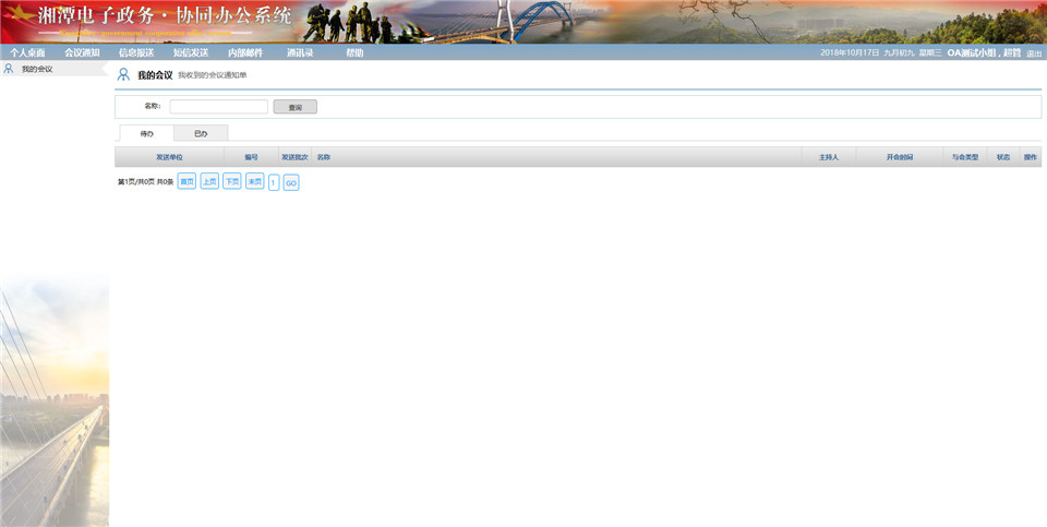市委OA系統(tǒng)是是在老的OA系統(tǒng)上的升級(jí)和改版。主要有會(huì)議通知、信息報(bào)送、消息發(fā)送、內(nèi)部郵件、通訊錄幾大功能模塊。下文中將對(duì)短信發(fā)送、信息報(bào)送、會(huì)議管理三個(gè)模塊功能及界面規(guī)劃進(jìn)行簡(jiǎn)要說(shuō)明。